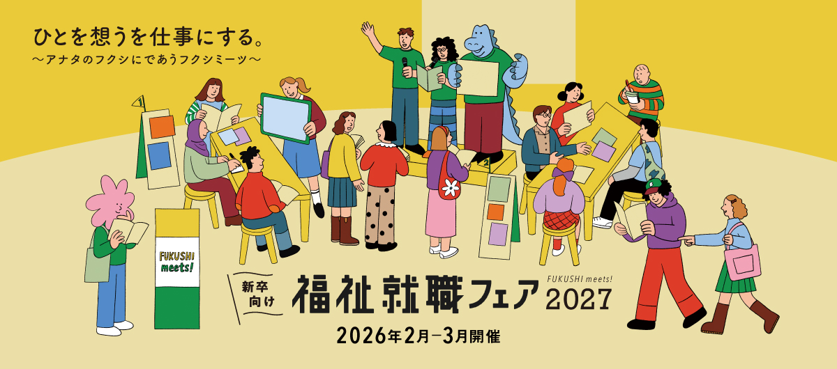 私たちが「FUKUSHI meets!」を通じてめざすもの。それは、単に法人と学生をつなぐだけの就職フェアではなく、福祉をよりよくすることです。そのためには、福祉を志すあなたと、想いある福祉法人との、幸せな出会いをつくること....