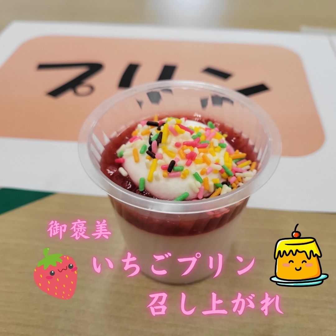 カラースプレーでデコレーションをした『いちごプリン🍓🍮』をご提供😁