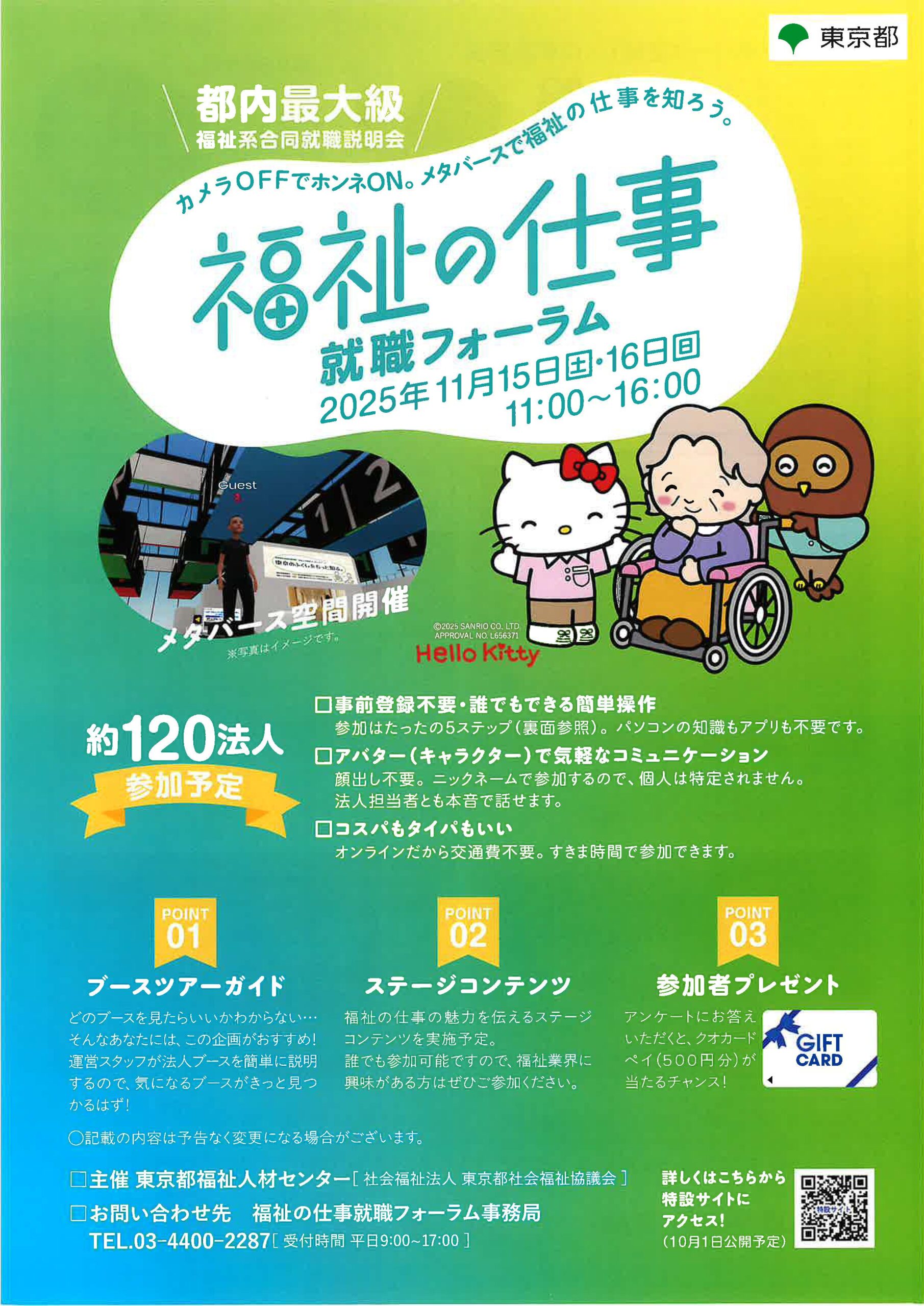 この就職フォーラムは、メタバース空間で開催されるから、学生さんに嬉しいメリットがたくさんあるんだ。
