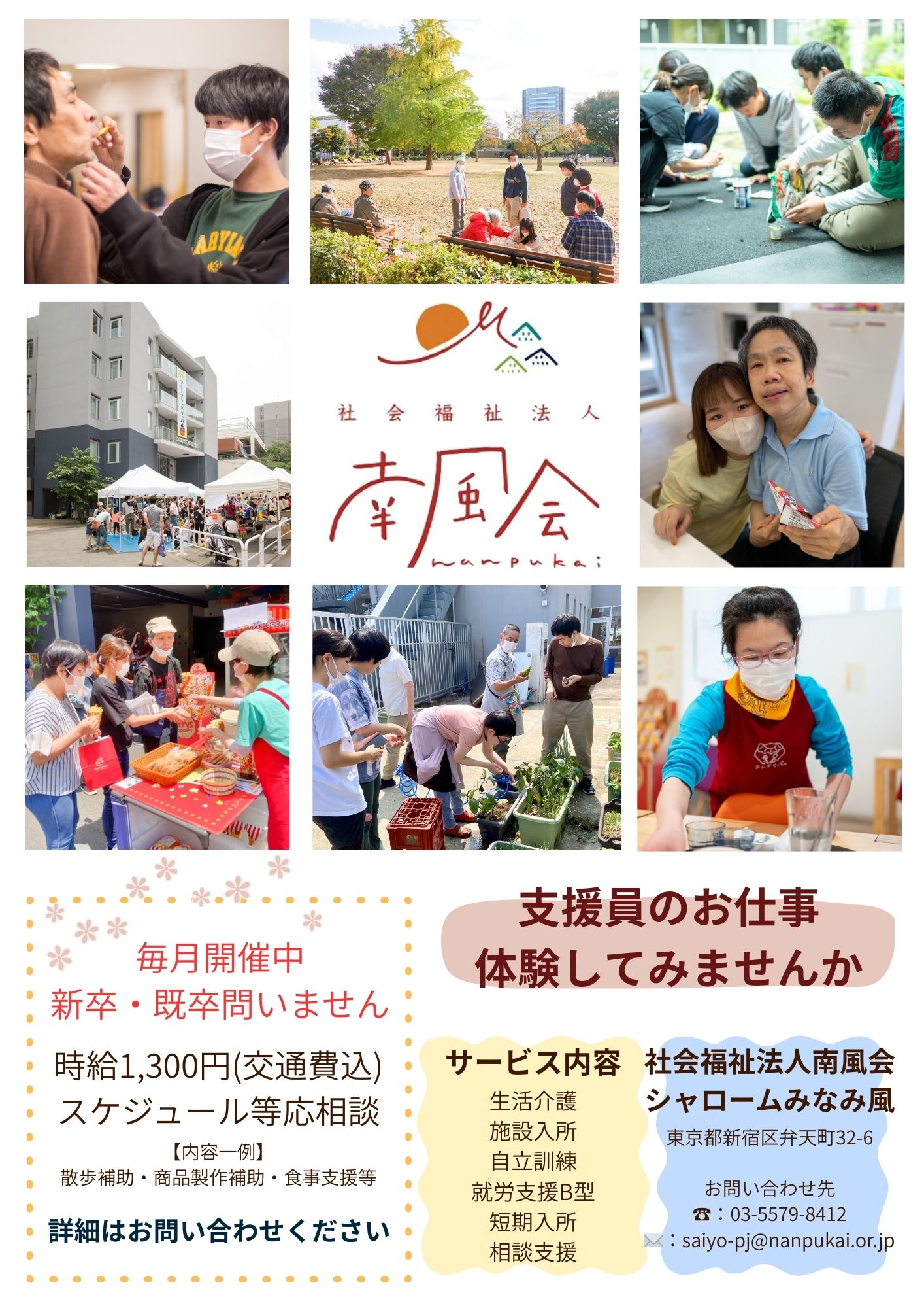 社会福祉法人南風会 シャロームみなみ風 採用担当者です。