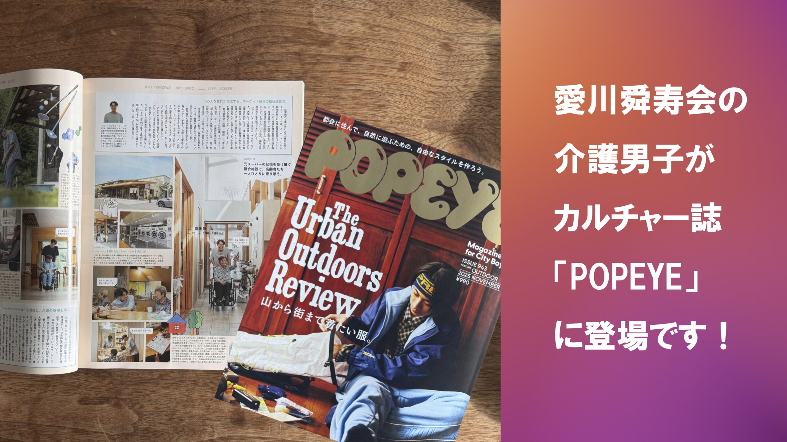 マガジンハウス「POPEYE」11月号の特集「介護の仕事のことをちゃんと知ってみないか?」に、愛川舜寿会で働く大卒4年目の介護男子が取り上げられています。