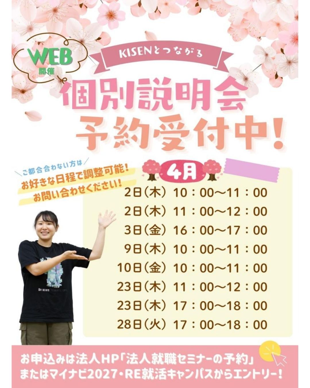 27卒の学生さん対象にオンライン・個別形式・60分 の説明会を実施中です!