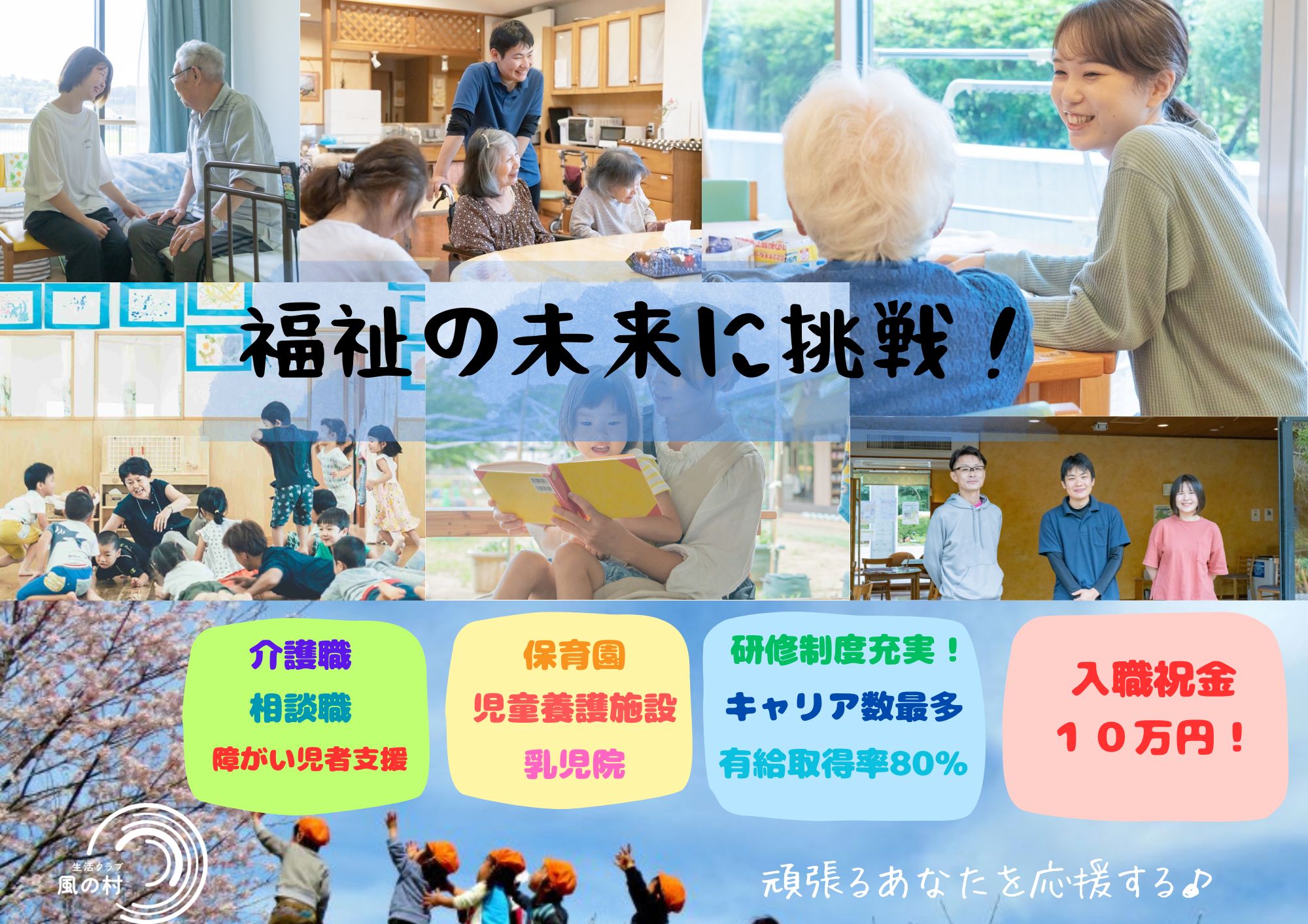 私たち生活クラブ風の村は、「赤ちゃんから看取りまで」幅広い分野で地域密着型の支援を行っています。「できることを奪わないケア」「主体性を大切にしたケア」「やってみたい・やり続けたい」が叶えられるように、個別ケアの追及を、職員がチームとなって支えています。「今日はどうする?」「明日は何する?」風の村では個性豊かな人たちが暮らしています。「自分がここにいたいと思える場所」「自分らしくいられる環境」で、地域づくりの視点から福祉を考え、取り組んでいます。【充実したサポート制度完備】【福利厚生充実】