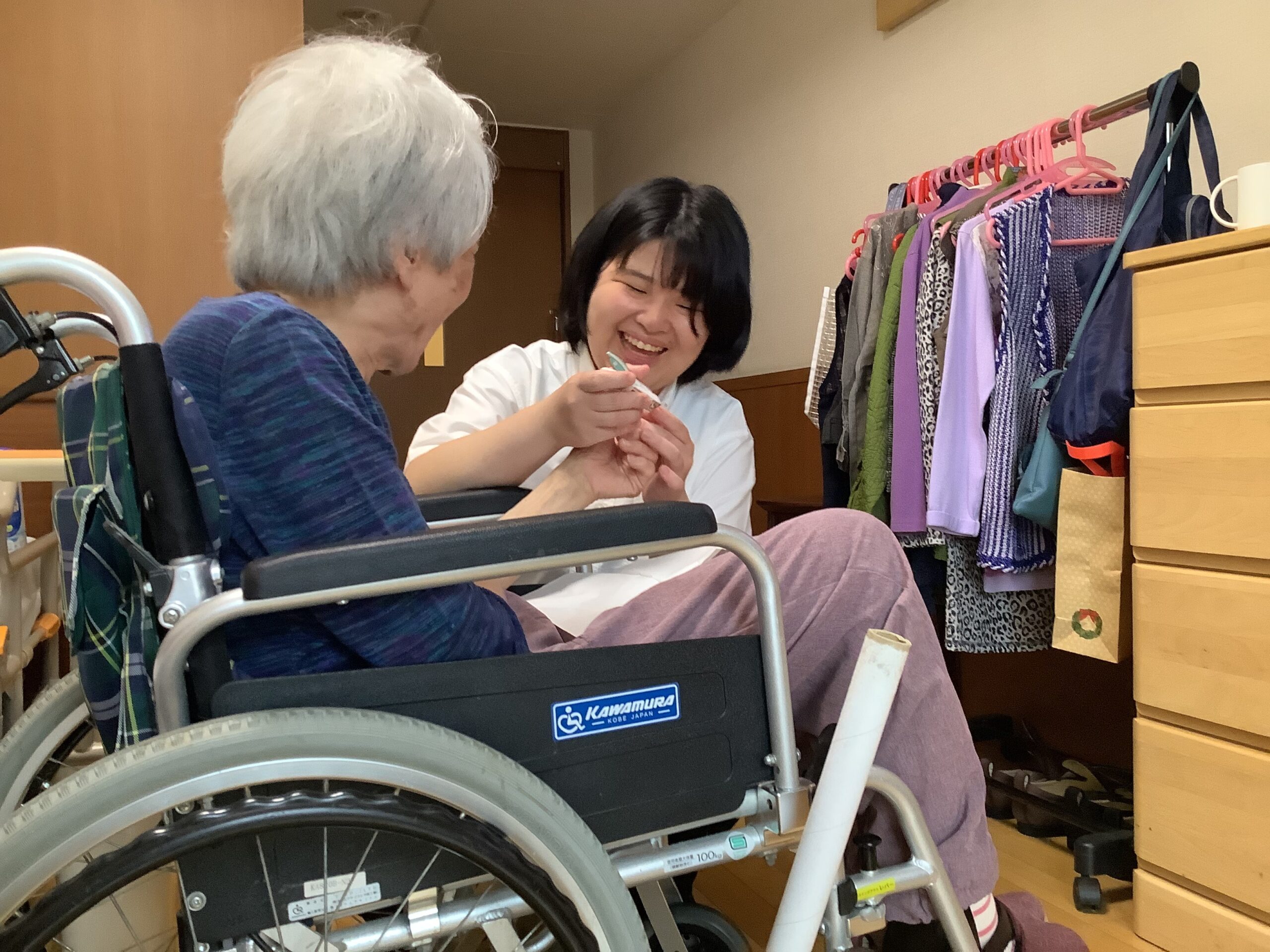 仕事のやりがいは、日に日に利用者様の事を理解できることです。普段の関わりから、「次はこれを頼んでこられそうだな」と予測し前もって行動し、利用者様から「気が利く」「いつもありがとう」と喜んでいただけてやりがいを感じています。また、最初は少し怖いと苦手意識を持っていた利用者様も、関わっていくうちにその方は言葉が少し強いだけで実際は怖くない方であることがわかり、冗談を言い合えるようになりました。このように、利用者様と関わっていく中で利用者様のことを段々理解していけることがとても楽しいです。人対人の仕事であるため、利用者様に直接感謝していただくことや喜んでいただけるため、仕事のやりがいを日々感じています。