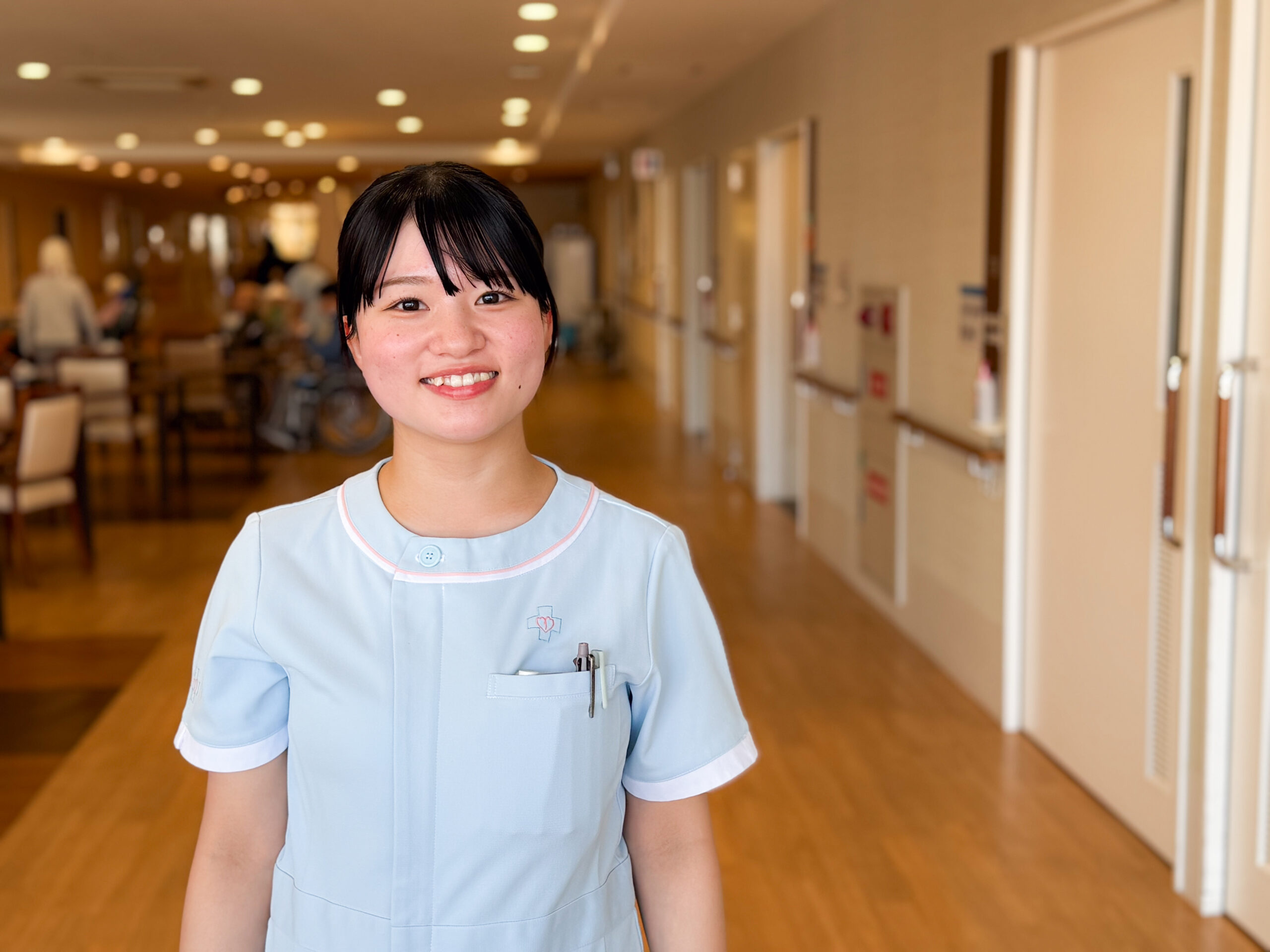 その中でこの病院を選んだ理由は、施設見学に参加した時の雰囲気です。職員さんとすれ違う度に明るく挨拶や声をかけてくれたり、遠目から見た会話の様子も多職種でチーム一丸となって働かれている様子で雰囲気がいいなと感じました。
