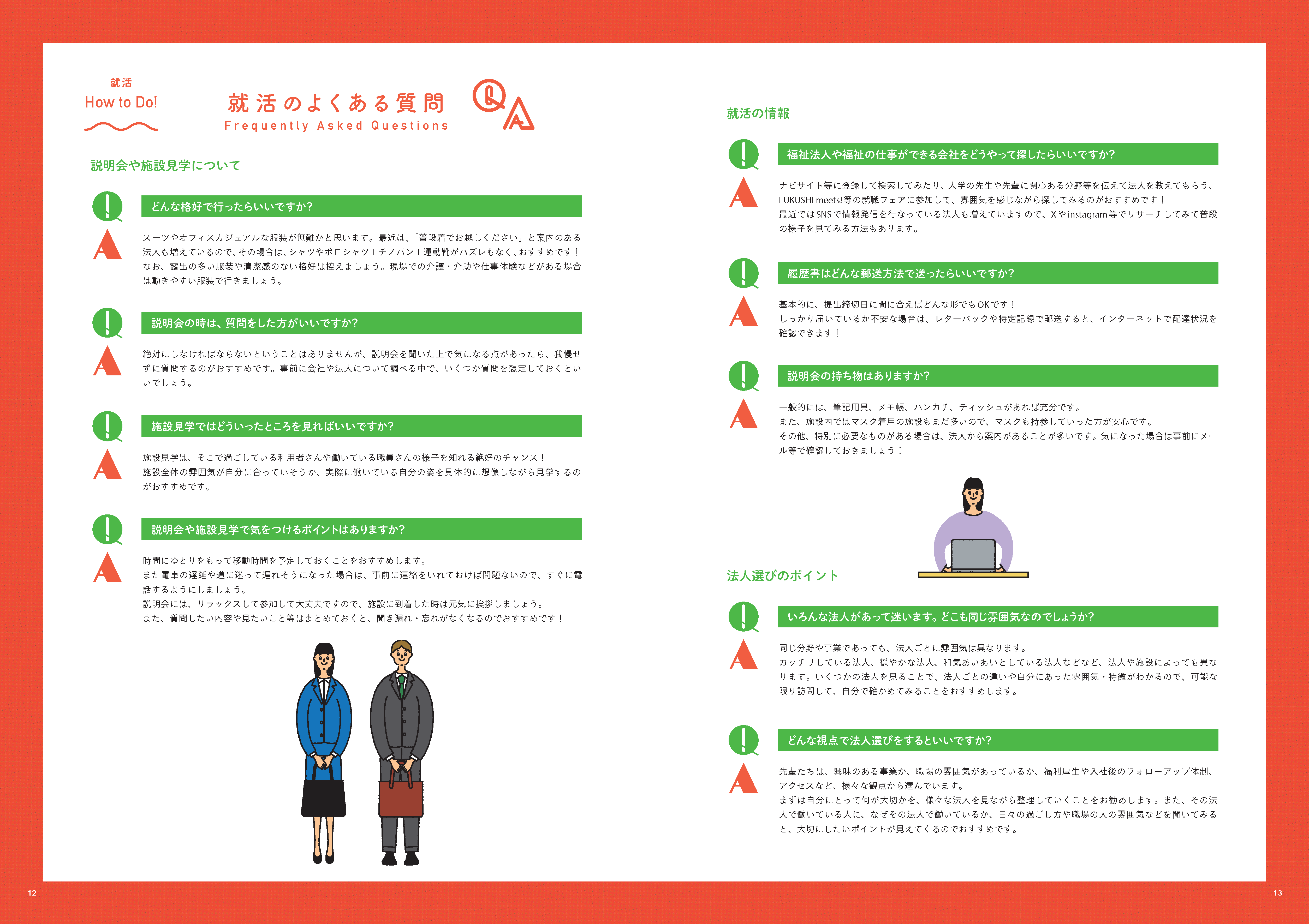 昨年制作した「福祉で働きたい学生のためのフクカツブック」には、「就活のよくある質問」をまとめています。